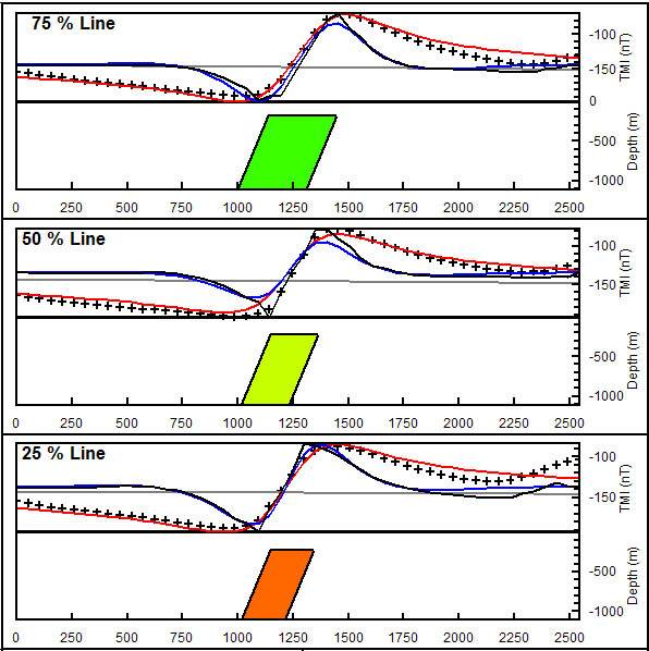 Cross-sectional views of a modeled body along strike