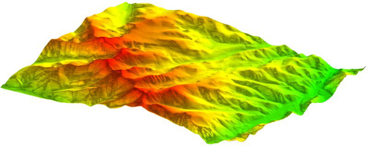 Topography terrain model based on DEM data