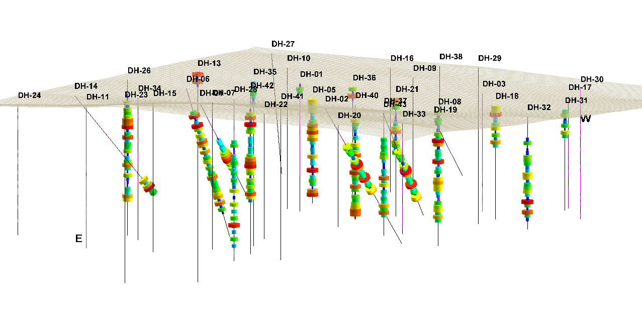 rockworks_mining_4 ← Previous Next → RockWorks 3D Striplogs with Assay Measurements, and Ground Surface RockWorks 3D Striplogs with Ground Surface
